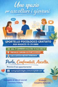 Sportello psicologico gratuito per ragazzi 15 – 29 anni