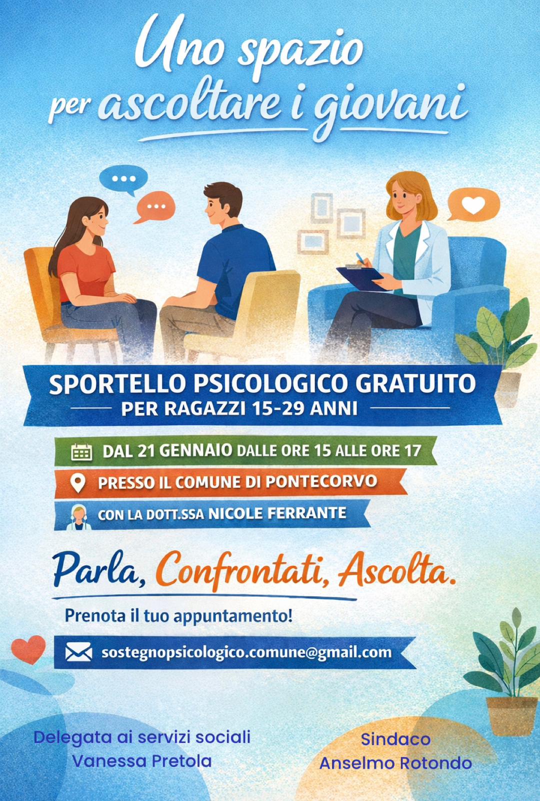 Sportello psicologico gratuito per ragazzi 15 - 29 anni